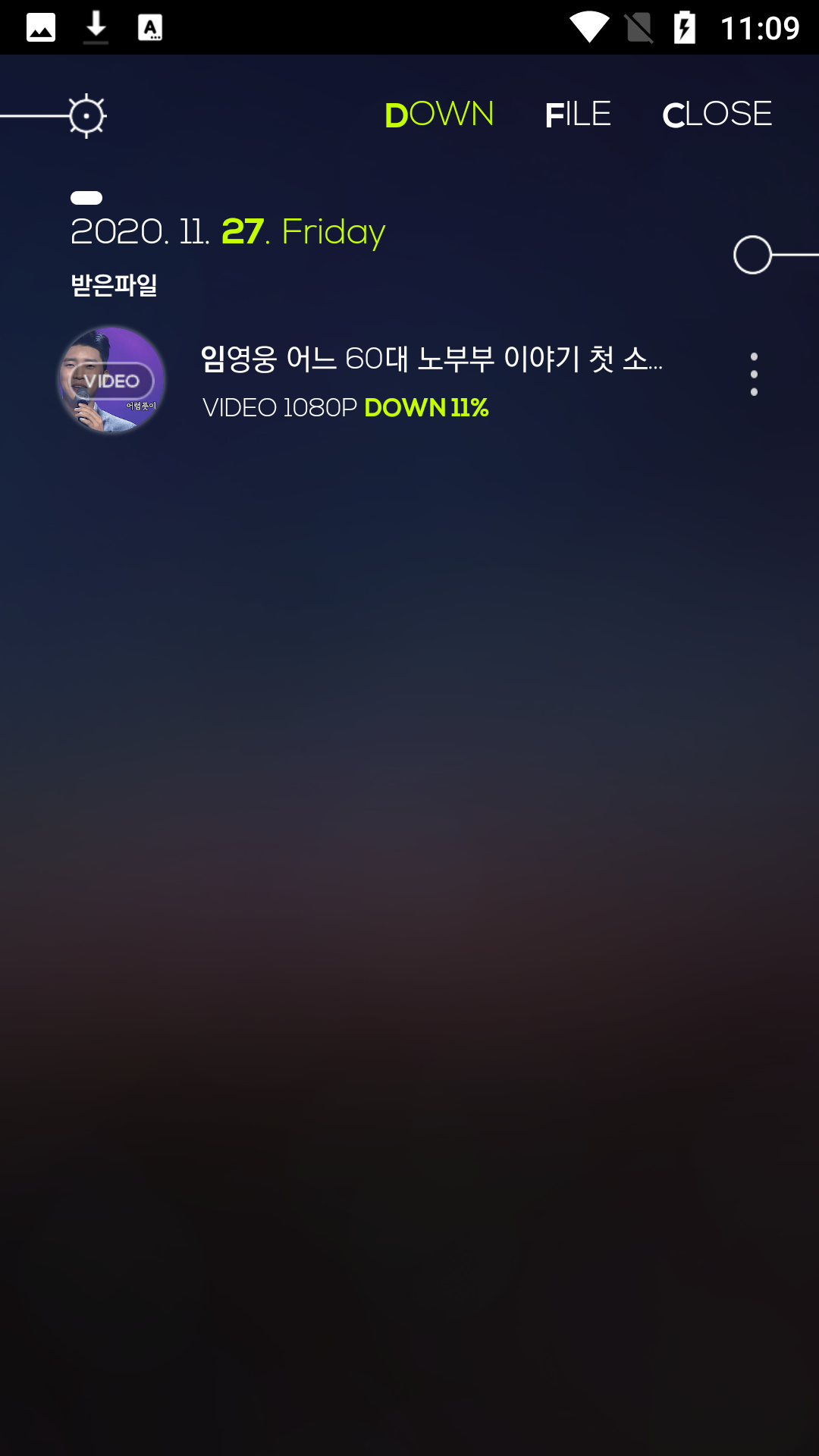 <FILE>로 이동하면 동영상 파일과 MP3 변환된 파일 2개가 보입니다. MP4 파일을 선택하면 재생하기 버튼이 나타납니다. <재생하기>를 눌러봅니다.