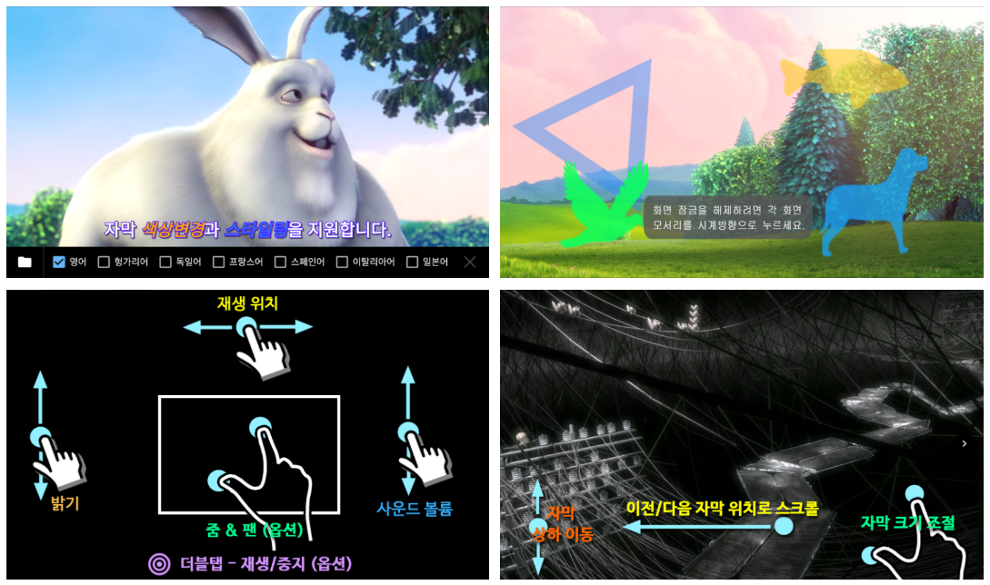 c) 핀치 줌, 줌&팬 - 멀티터치를 이용하여 비디오 화면 크기를 손쉽게 조절 할 수 있습니다. 또한 줌&팬을 옵션으로 지원합니다.