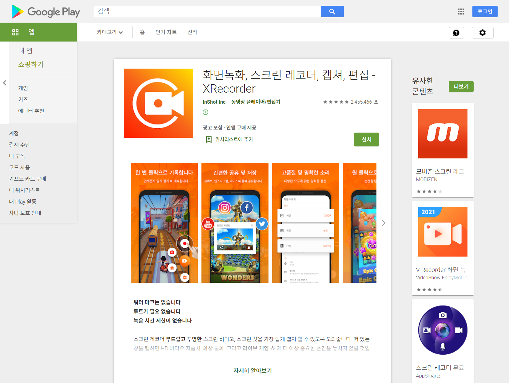 화면녹화, 스크린 레코더, 캡쳐, 편집 - XRecorder - Google Play 앱