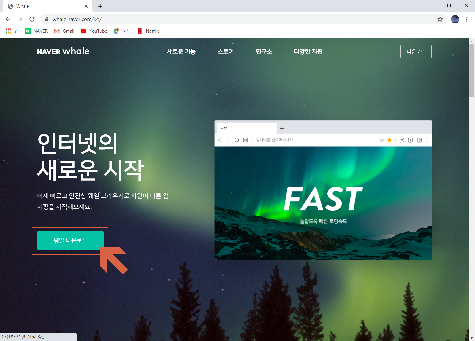 네이버 웨일 브라우저를 다운로드하시려면 아래 링크를 참조하세요.