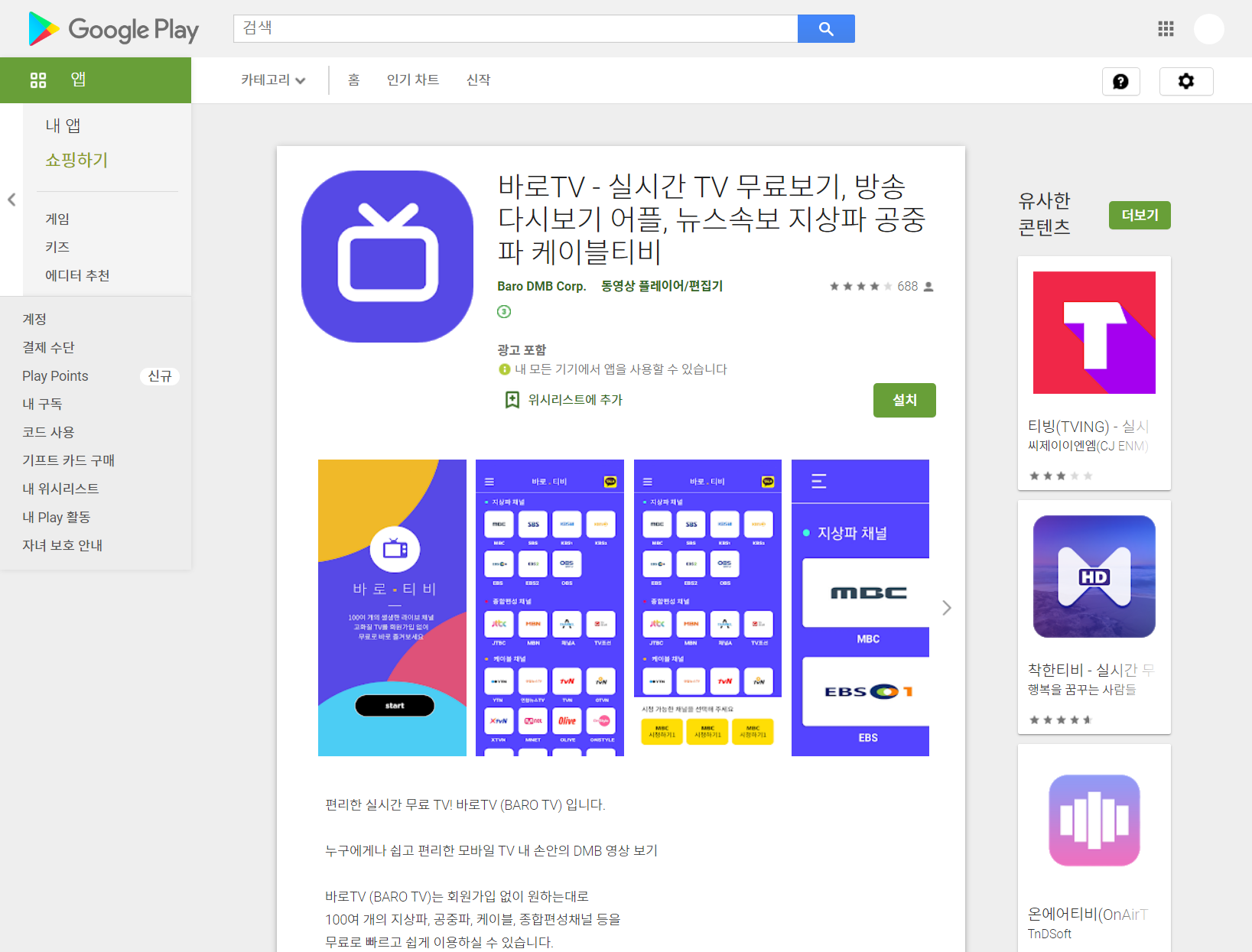 바로TV(BARO TV), 실시간 TV 무료보기 방송 다시보기 어플