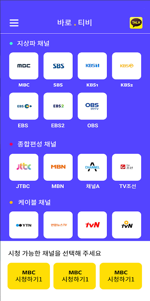 3. 하단에 시청 가능한 채널 목록 선택