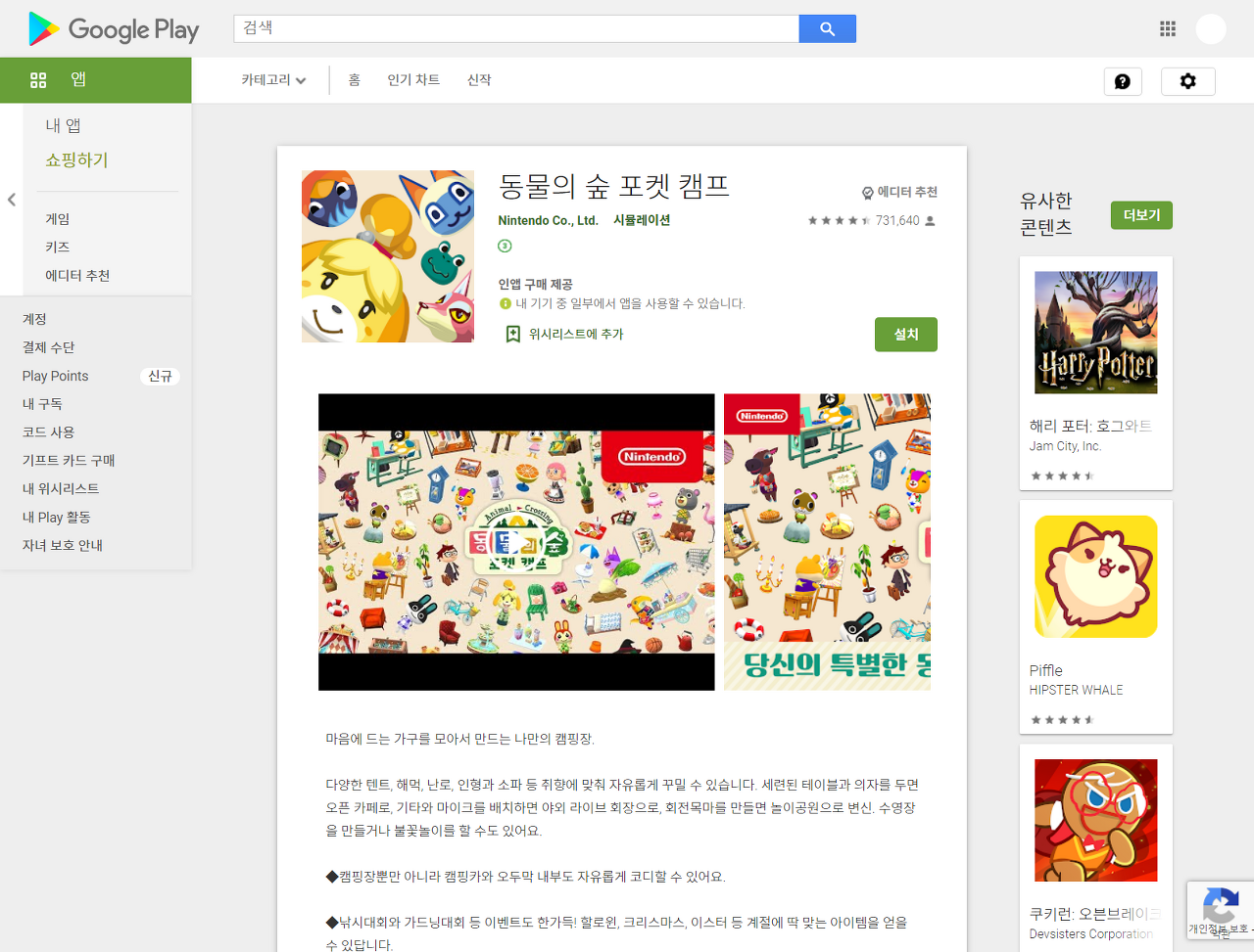 동물의 숲 포켓 캠프는 아기자기하고 개성 넘치는 나만의 캠핑장을 꾸미고 친구들도 초대하여 함께 즐기는 소셜 시뮬레이션 게임입니다.