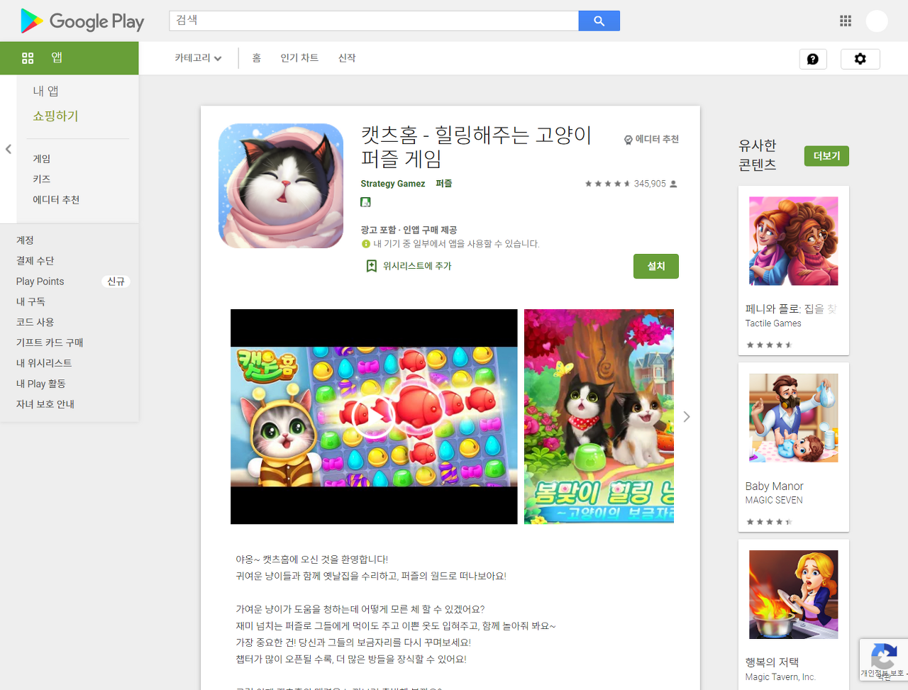 캣츠홈, 힐링해주는 고양이 퍼즐 게임
