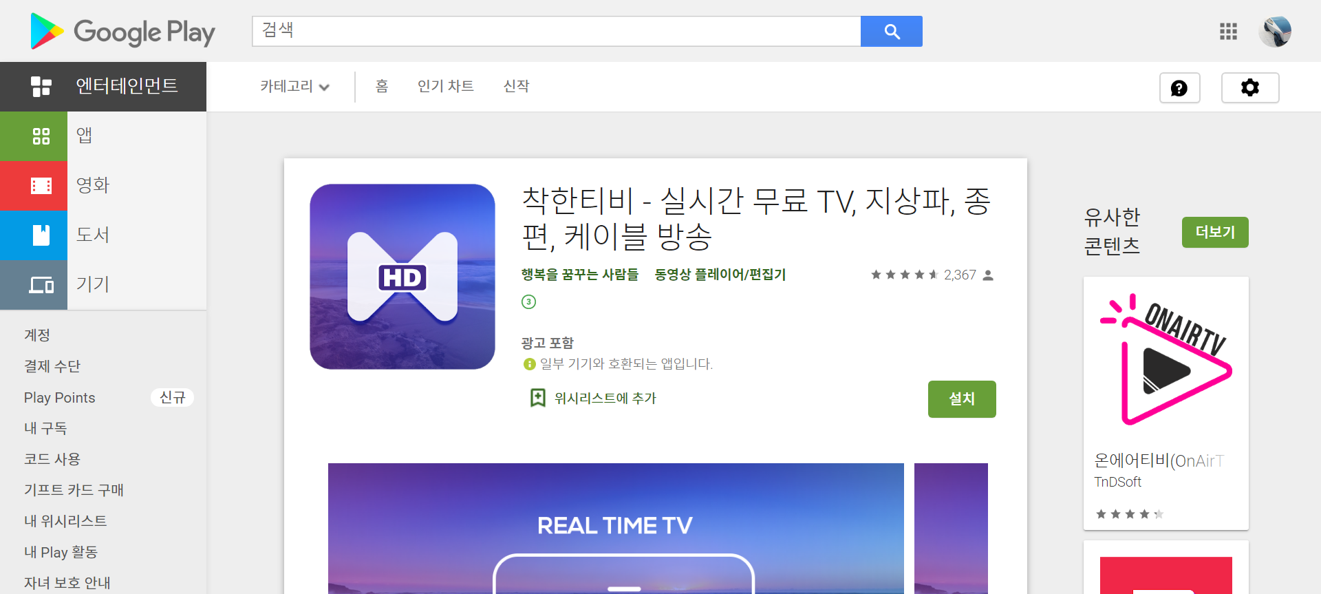 착한티비 - 실시간 무료 TV, 지상파, 종편, 케이블 방송 - Google Play 앱